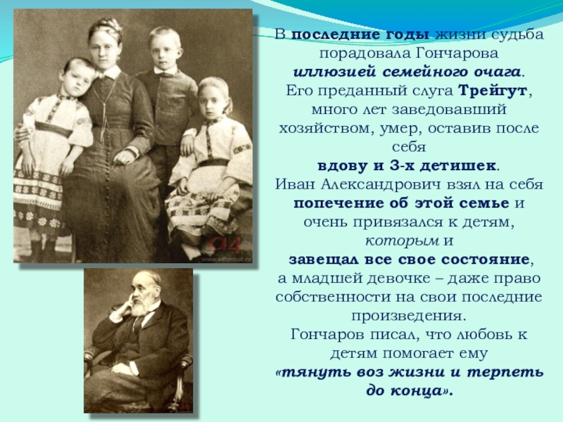 Иван Александрович взял на себя попечение об этой семье и очень привязался к детям, которым и