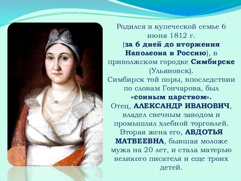 до вторжения Наполеона в Россию), в приволжском городке Симбирске (Ульяновск).