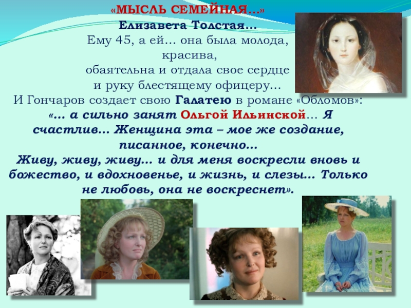И Гончаров создает свою Галатею в романе «Обломов»:
