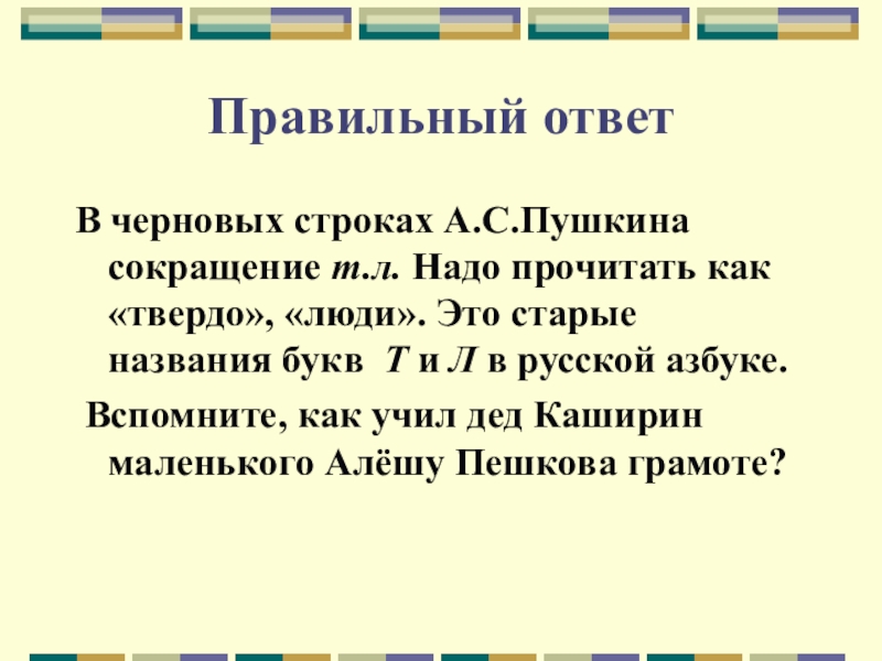 В черновых строках А.С.Пушкина сокращение т.л. Надо прочитать как «твердо»,