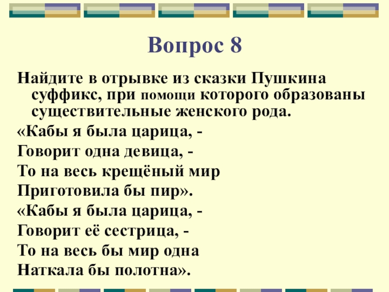 Найдите в отрывке из сказки Пушкина суффикс, при помощи которого