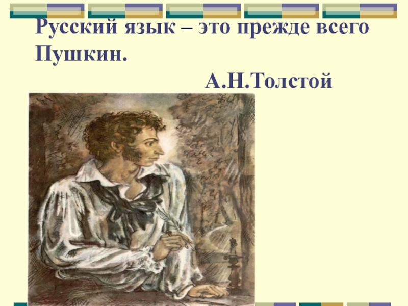 Слайд 2Русский язык – это прежде всего Пушкин.