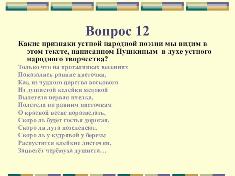 Какие признаки устной народной поэзии мы видим в этом