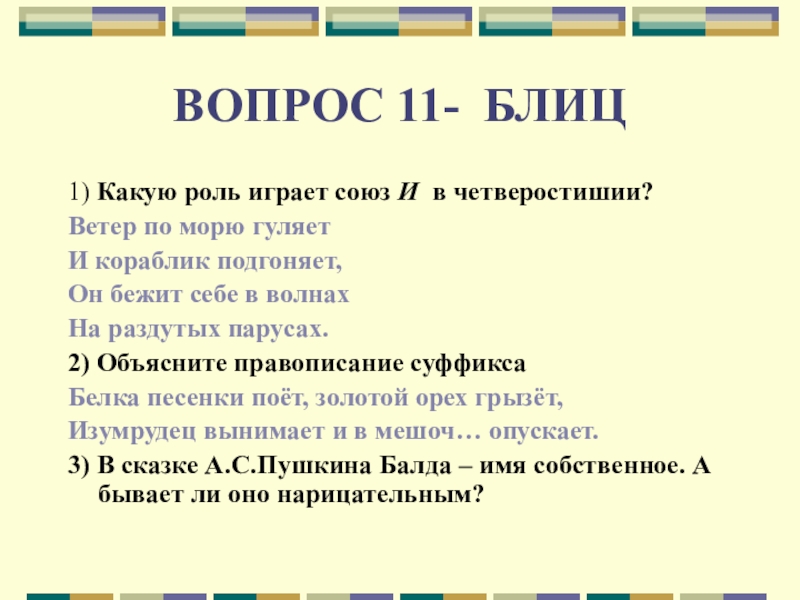 Слайд 25ВОПРОС 11- БЛИЦ