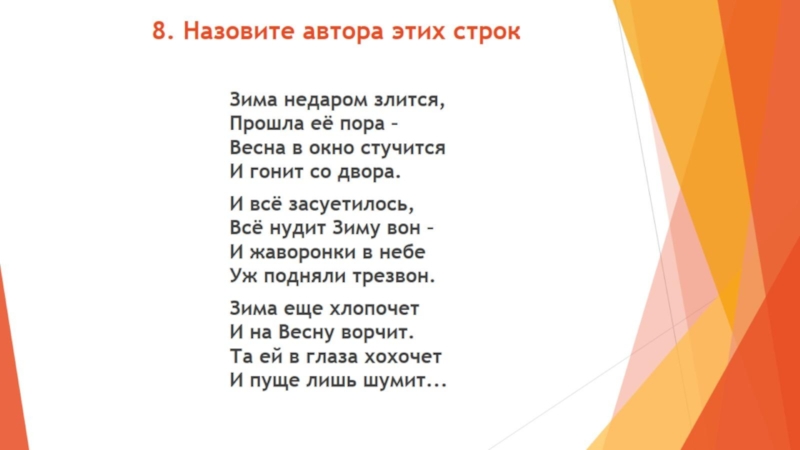 Слайд 65.Из какого произведения эти строки? Назовите название и автора стихотворения