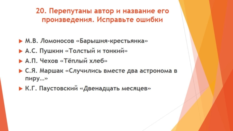 20. Перепутаны автор и название его произведения. Исправьте ошибки