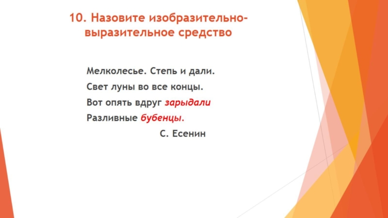 Слайд 1110. Назовите изобразительно-выразительное средство
