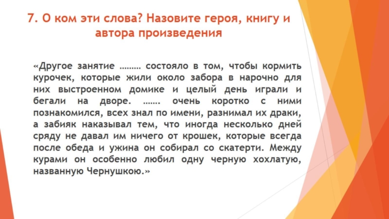 7. О ком эти слова? Назовите героя, книгу и автора произведения