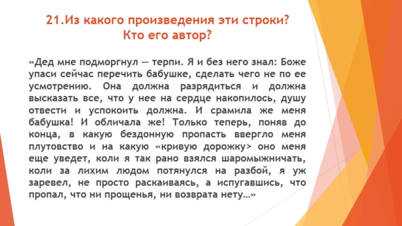 Слайд 2221.Из какого произведения эти строки? Кто его автор?