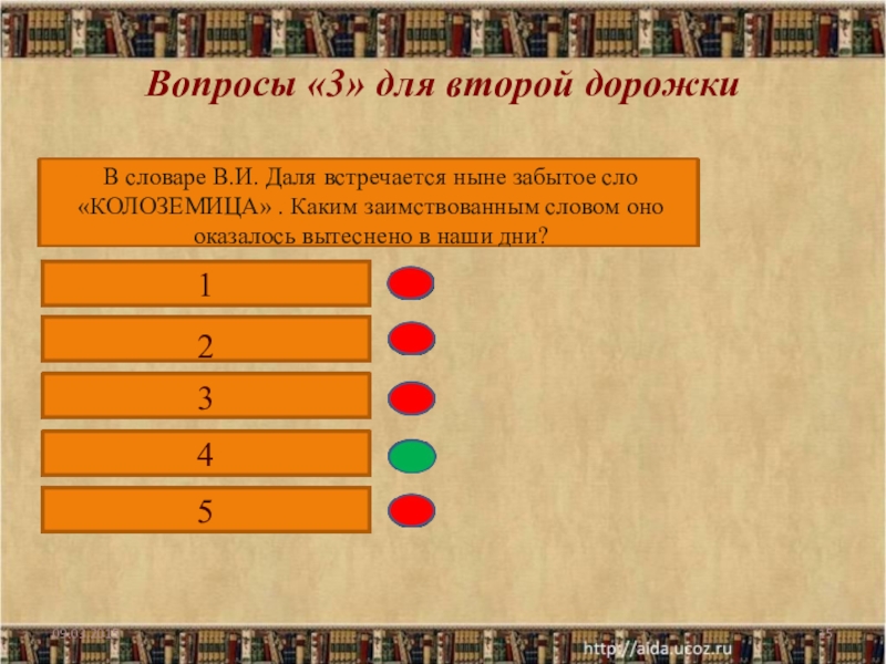 сло «КОЛОЗЕМИЦА» . Каким заимствованным словом оно оказалось вытеснено в наши дни?