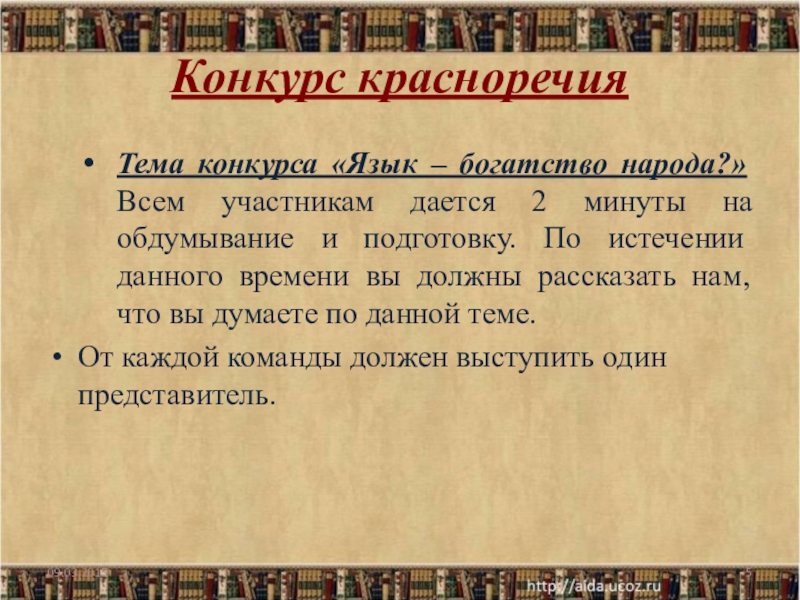 Тема конкурса «Язык – богатство народа?» Всем участникам дается