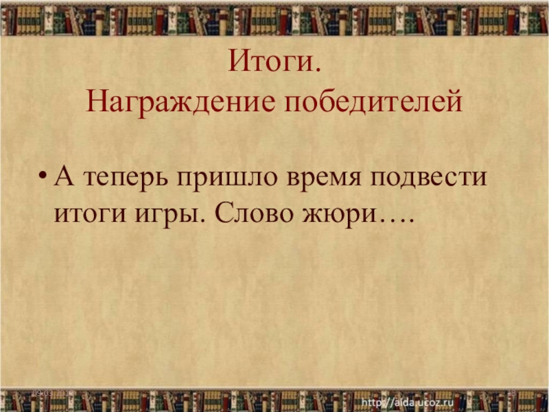 А теперь пришло время подвести итоги игры. Слово жюри….