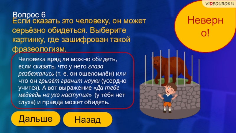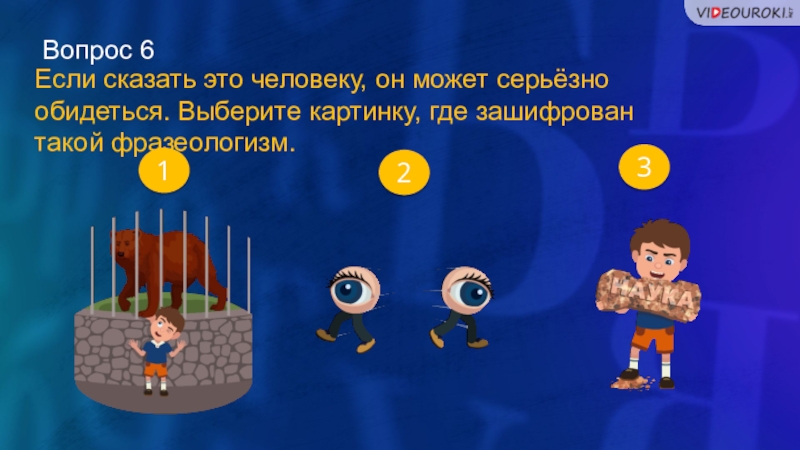 Если сказать это человеку, он может серьёзно обидеться. Выберите картинку, где зашифрован такой фразеологизм.