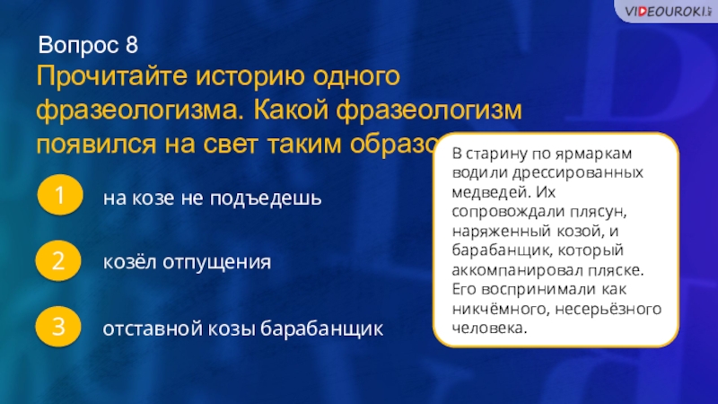 В старину по ярмаркам водили дрессированных медведей. Их сопровождали плясун, наряженный козой, и барабанщик, который аккомпанировал пляске. Его воспринимали как никчёмного, несерьёзного человека.