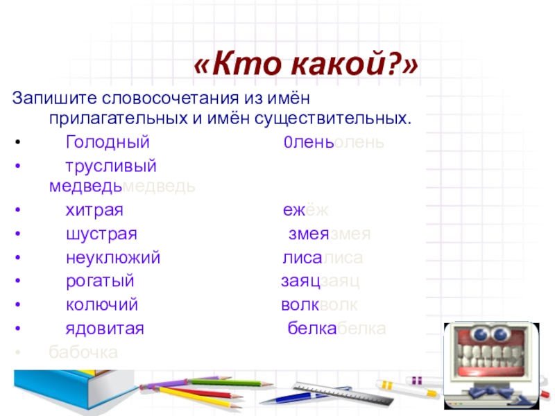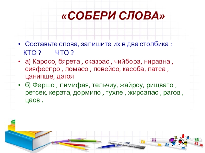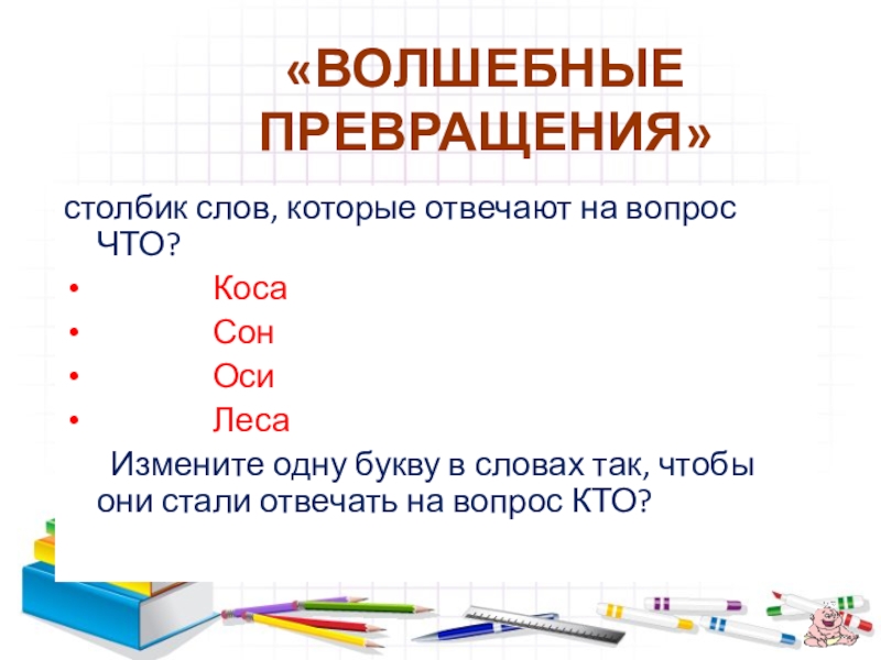 Измените одну букву в словах так, чтобы они стали отвечать на вопрос КТО?