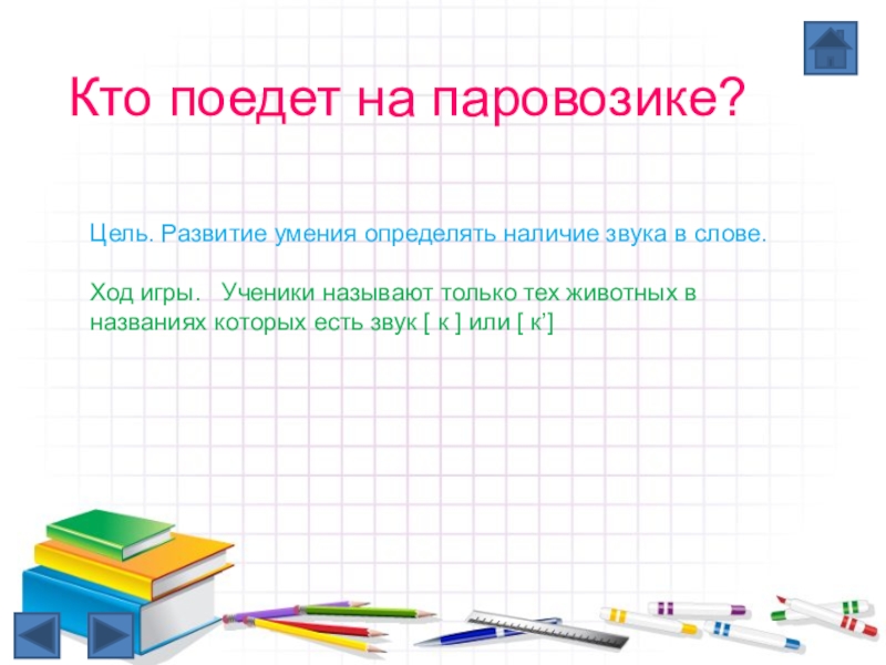 игры. Ученики называют только тех животных в названиях которых есть звук [ к ] или [ к’]