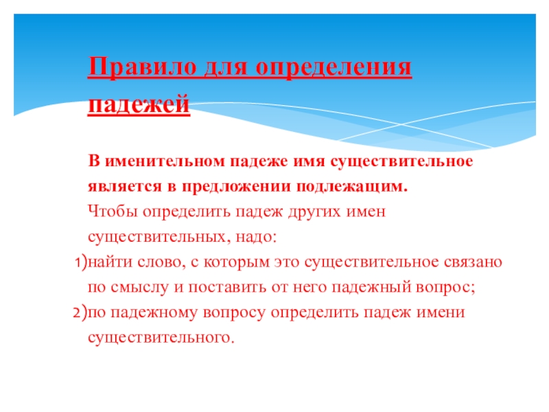 - научиться распознавать именительный падеж, не путать его с другими падежами.