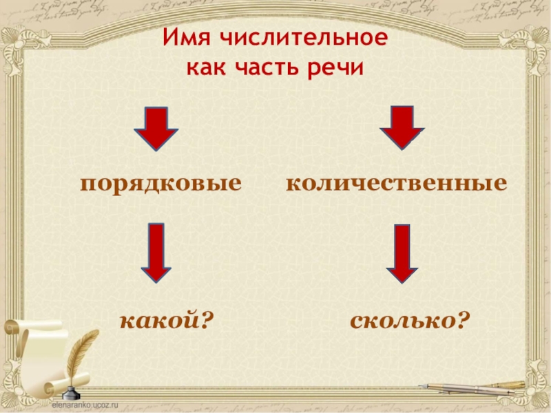 от других частей речи; показать синтаксическую роль имени числительного; способствовать развитию навыка поисковой и аналитической деятельности.
