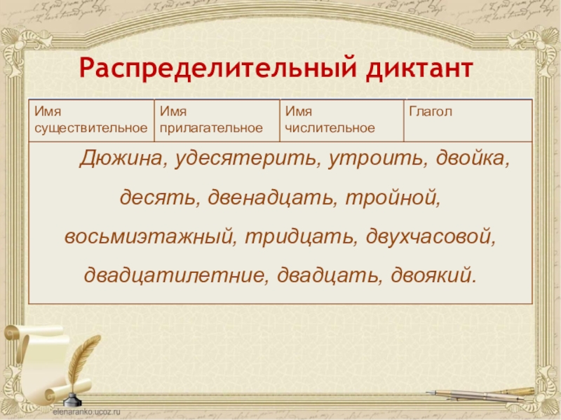 Задание: запишите предложения; над количественными числительными поставьте букву к, над