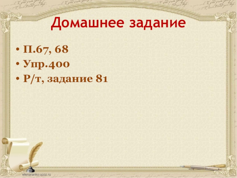 Домашнее заданиеП.67, 68Упр.400Р/т, задание 81