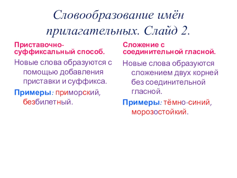 Новые слова образуются сложением двух корней без соединительной гласной.