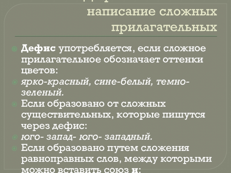 Слайд 21Дефисное и слитное написание сложных прилагательных
