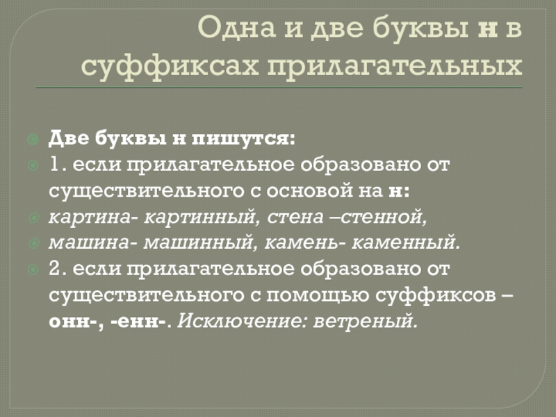 Слайд 18Одна и две буквы н в суффиксах прилагательных
