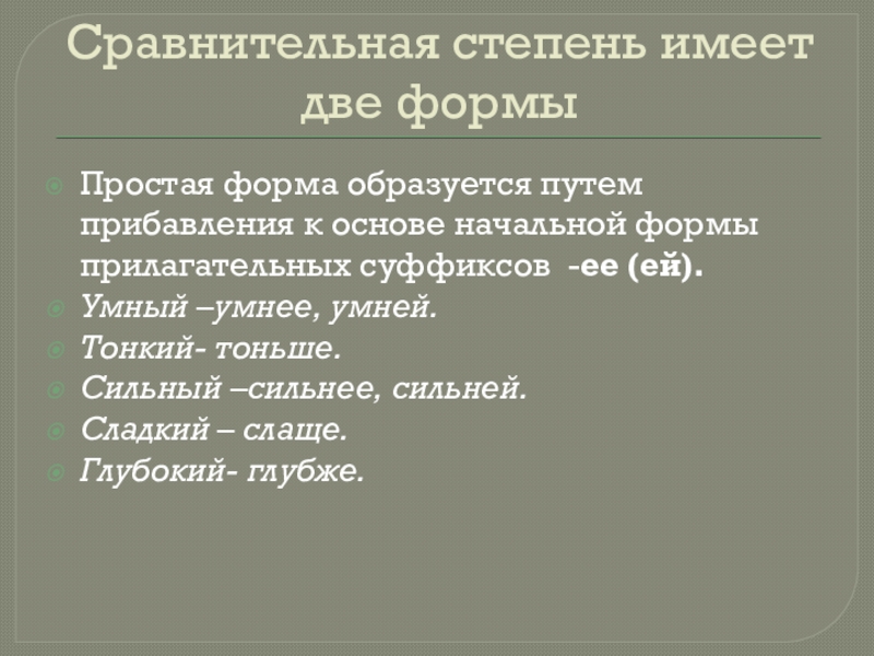 Умный – умнее, сильный –сильнее.