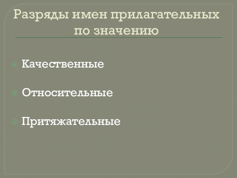 Слайд 3Разряды имен прилагательных