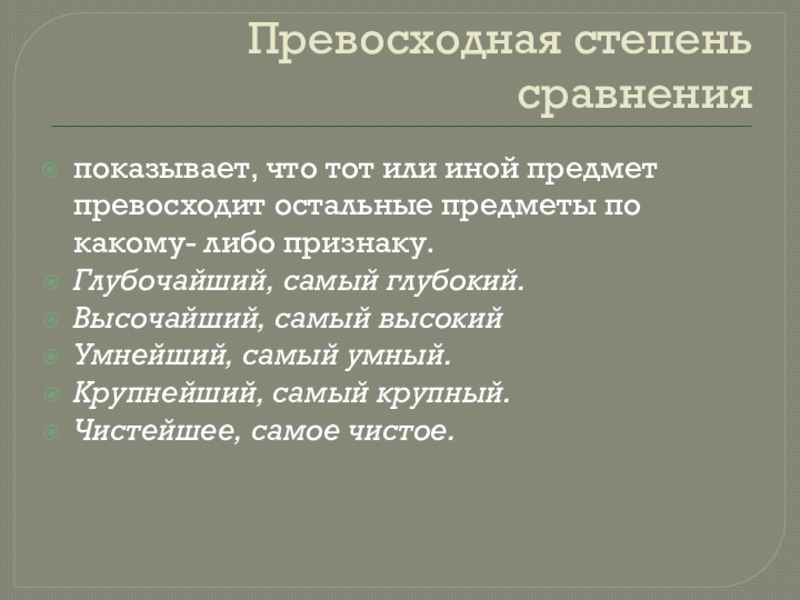 Слайд 9Превосходная степень сравнения