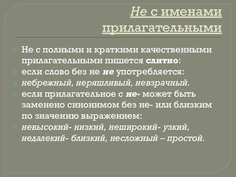 Не с полными и краткими качественными прилагательными пишется