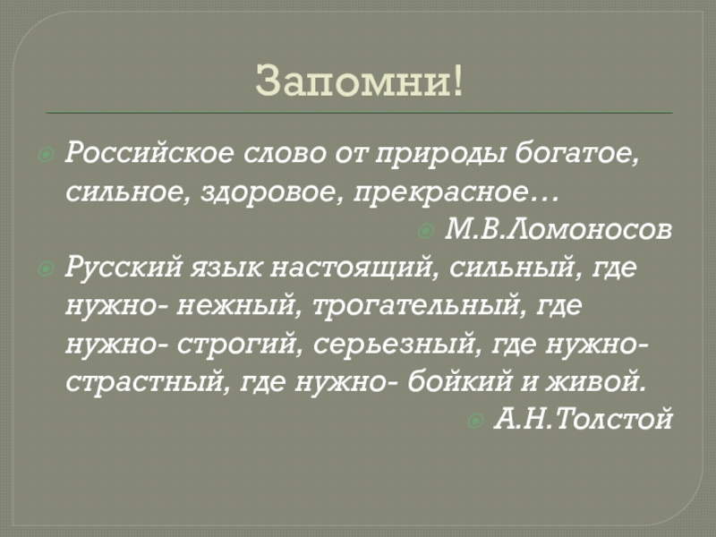 Российское слово от природы богатое, сильное, здоровое, прекрасное…
