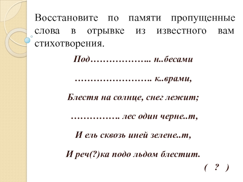 Восстановите по памяти пропущенные слова в отрывке из известного вам стихотворения.