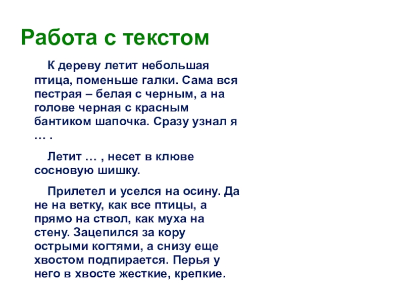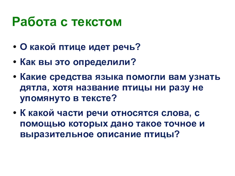 языка помогли вам узнать дятла, хотя название птицы ни разу не упомянуто в тексте?