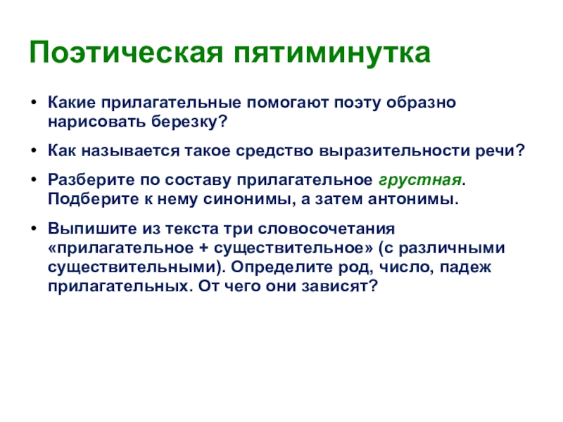 Какие прилагательные помогают поэту образно нарисовать березку?