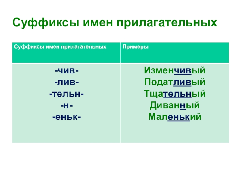 Разобрать по составу слова задумчивый, заботливый. Приведите примеры прилагательных с такими же суффиксами.