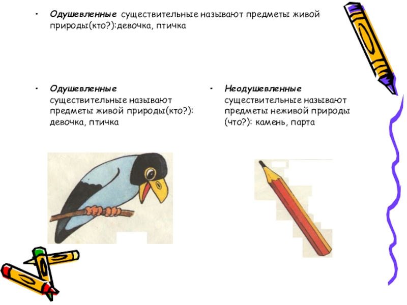 Слайд 4Одушевленные существительные называют предметы живой природы(кто?):девочка, птичка