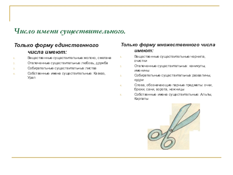 Слова, обозначающие парные предметы: очки, брюки, сани, ворота, ножницы