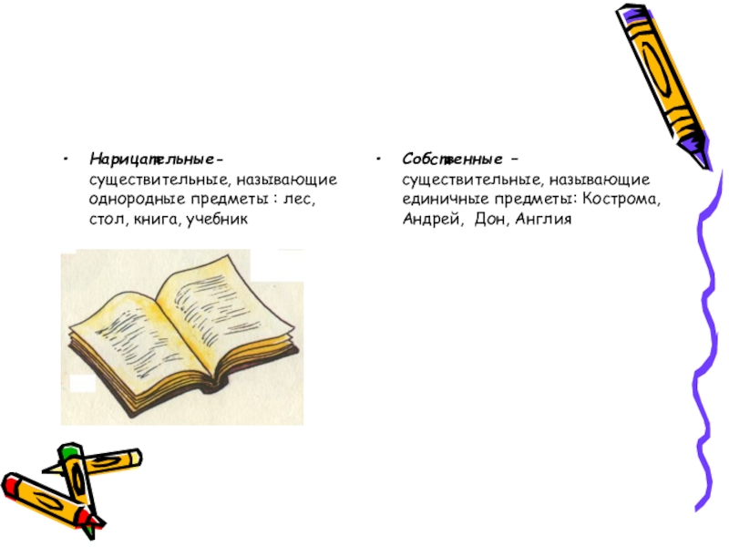 Слайд 3Нарицательные- существительные, называющие однородные предметы : лес, стол, книга, учебник
