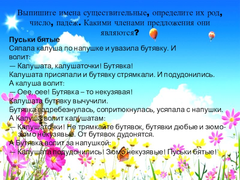 — Калушаточки! Не трямкайте бутявок, бутявки дюбые и зюмо-зюмо некузявые. От бутявок дудонятся.