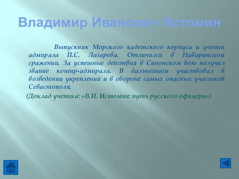 (Доклад ученика: «В.И. Истомин: путь русского офицера»)