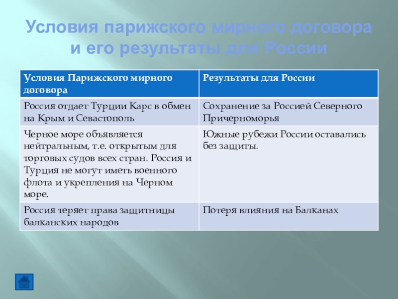 Слайд 16Условия парижского мирного договора и его результаты для России