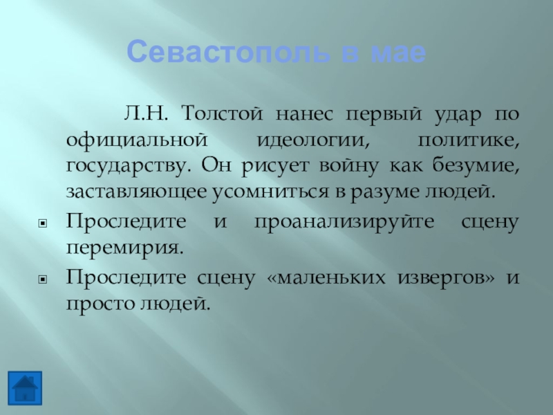 Прочитать и проанализировать произведение Л.Н.Толстого «Севастопольские рассказы».