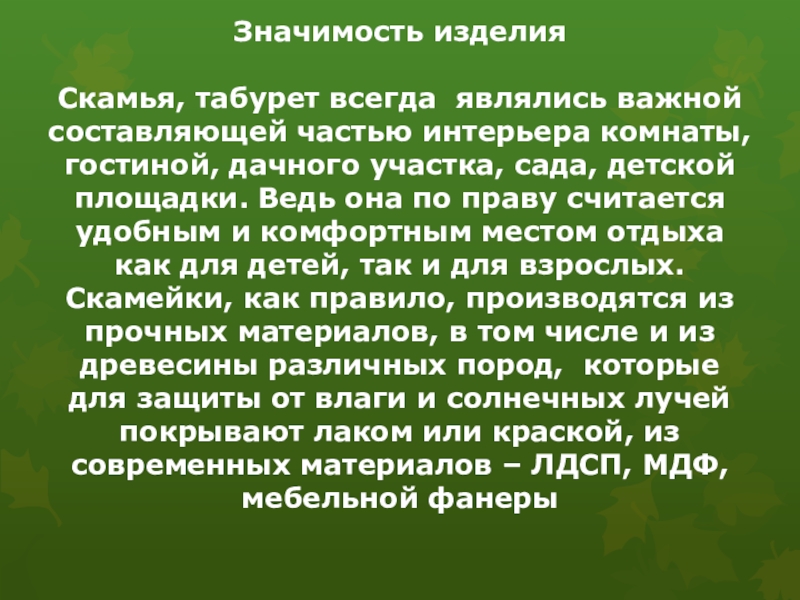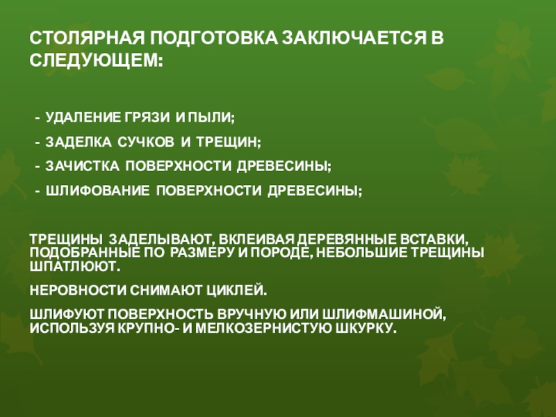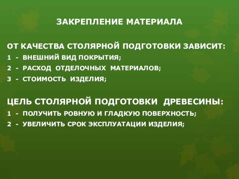 Образовательная: изучение технологии столярной подготовки изделия к финишной отделке, определение качества отделки изделия и создание рекламы на основе полученных знаний по профессии, русскому языку, литературе для реализации изделия; оценить качество выполненных работ, создать термины для рекламы изделия.