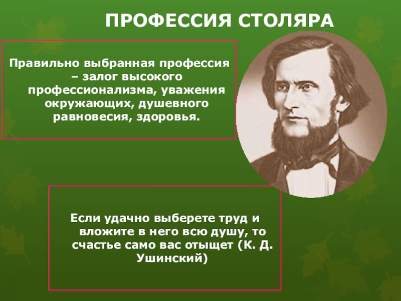 Если удачно выберете труд и вложите в него всю душу, то счастье само вас отыщет (К. Д. Ушинский)