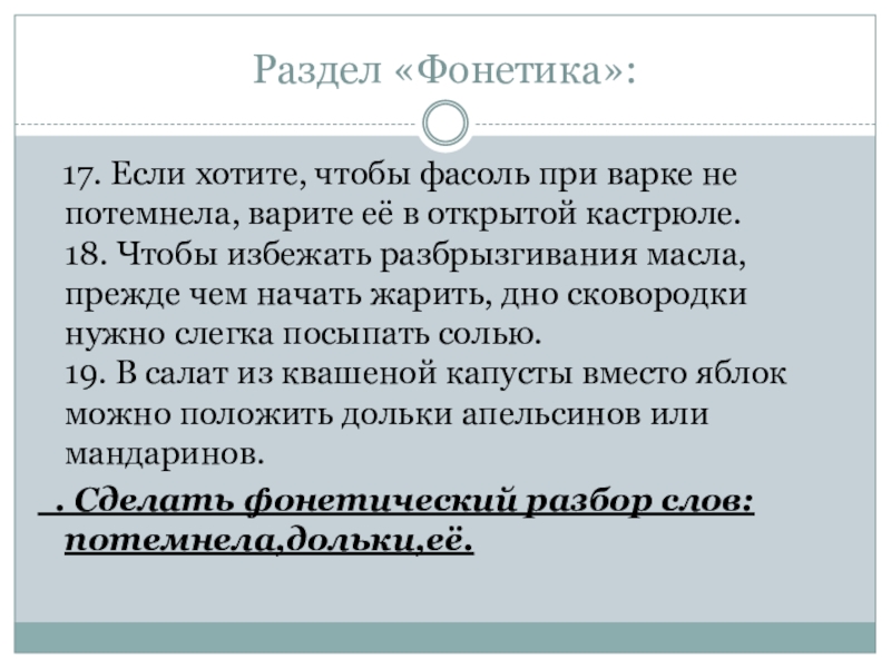 . Сделать фонетический разбор слов: потемнела,дольки,её.