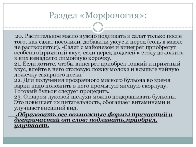 .Образовать все возможные формы причастий и деепричастий от слов: подливать,приобрёл,улучшает.