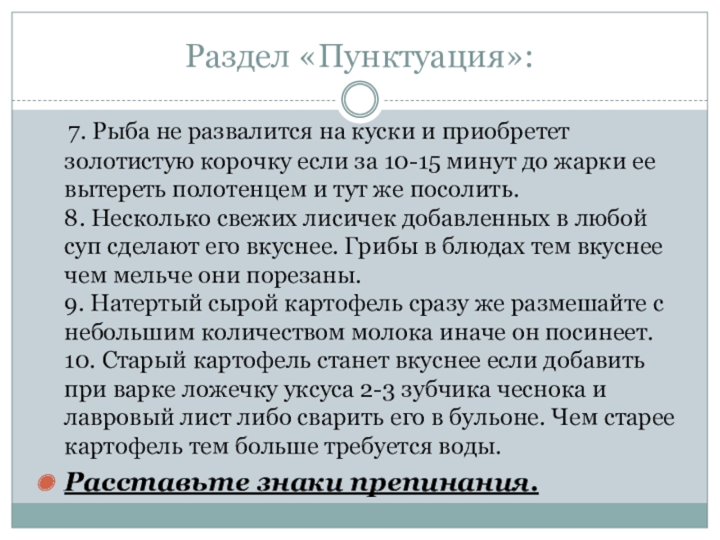 26. Для устранения сильного запаха при жарении рыбы в растительное масло кладут 1 сырую картофелину, очищенную и нарезанную ломтиками.