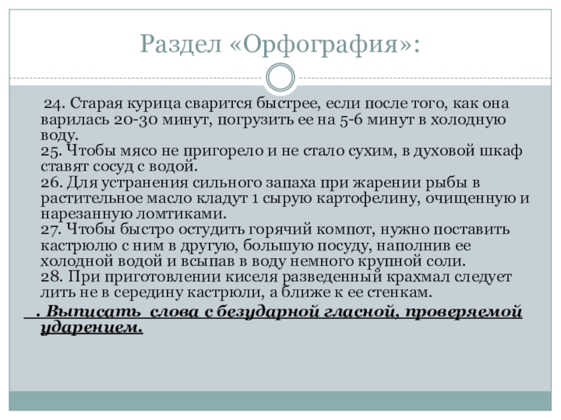 . Выписать слова с безударной гласной, проверяемой ударением.