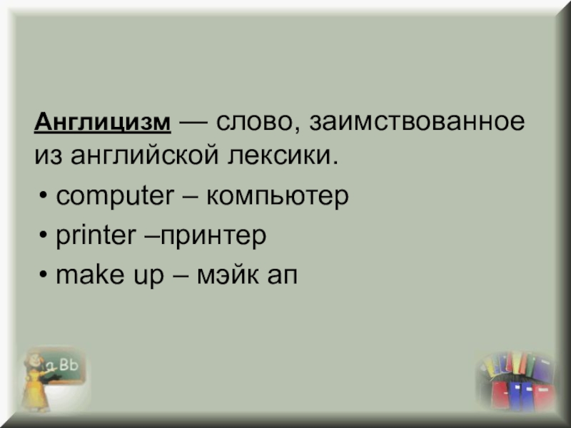 Слайд 9Англицизм — слово, заимствованное из английской лексики.